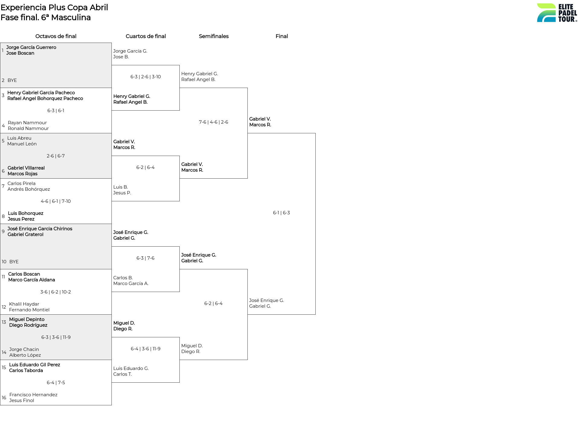 Cuadro principal 6ª Masculina